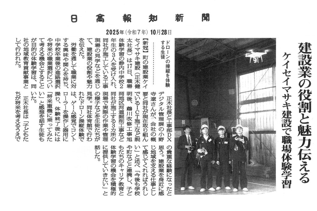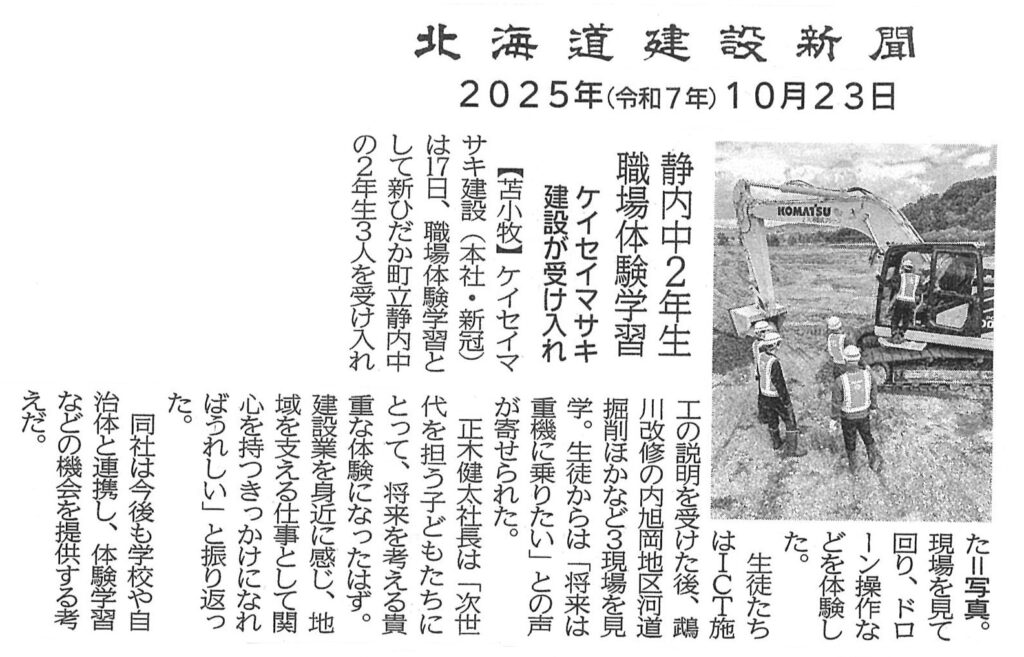 静内中学校の生徒たちが職場体験で当社を訪問されました😊ICT建機を体験し、建設業について学んでいただきました!