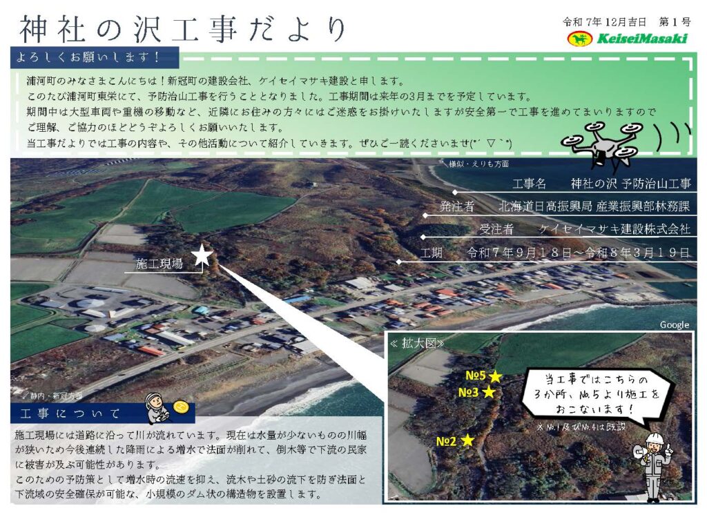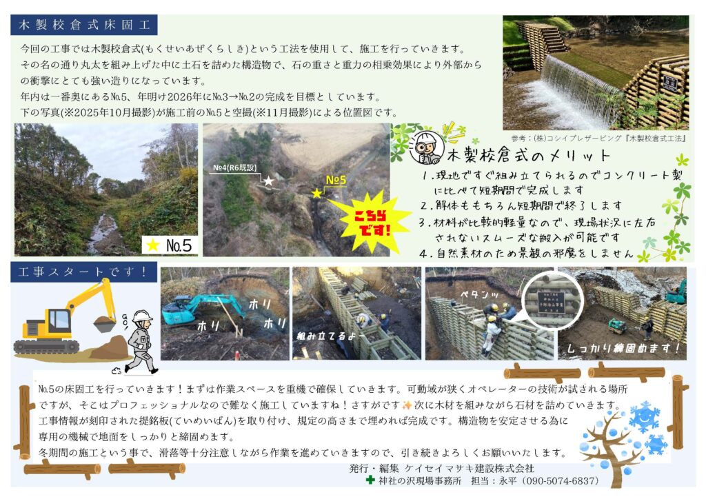 浦河町東栄にて施工中の神社の沢 予防治山工事の工事だよりをお届けします!当工事は床固工3箇所の施工がメインの工事となっております。出来上がるのは木材や石材を中心とした自然の材料で造られる構造物で、ダムのような形状をしており、近隣の牧場や民家に対し有事の際の倒木・土砂の流出等の被害を最小限に留めることを目的としています。